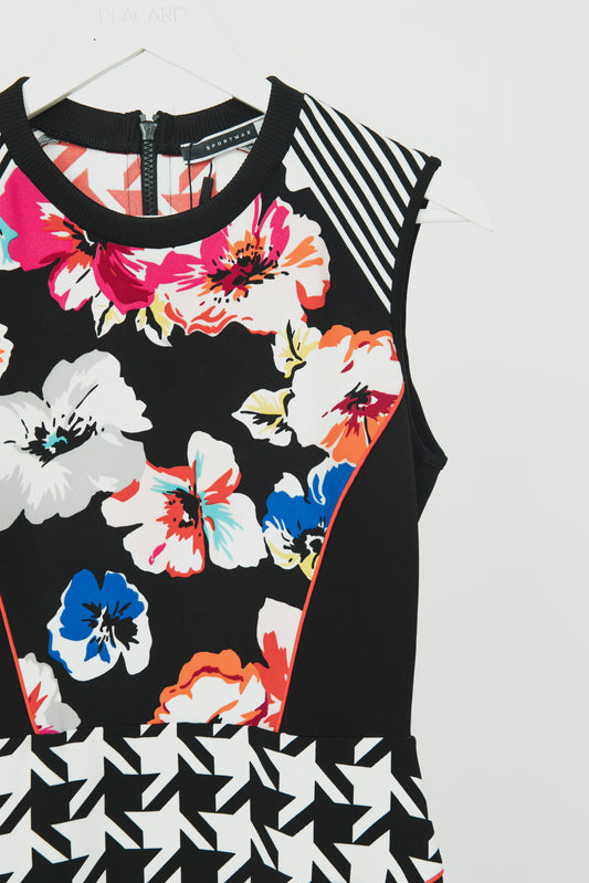 VESTIDO ESTAMPADO PIED DE POULE CON FLORES