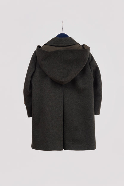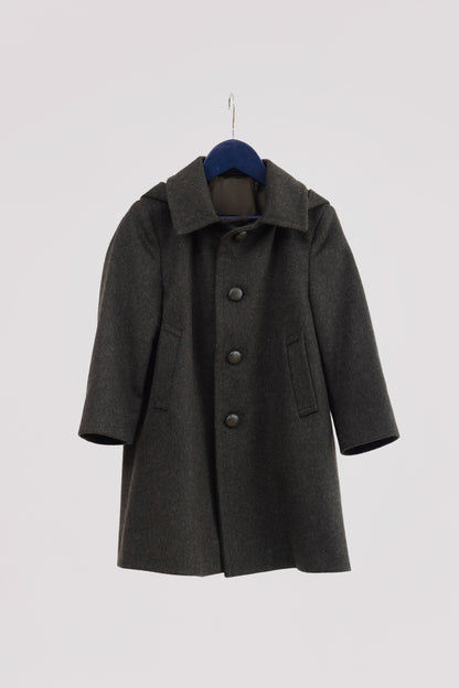 Abrigo LODENHAUS. Modelo confeccionado en  100% lana, este elegante abrigo representa la combinación perfecta entre funcionalidad, tradición y calidad para nuestros petit. El tejido loden se caracteriza por ser muy resistente y con un acabado exclusivo que permite eliminar las manchas más comunes sin esfuerzo. Diseñado clásico  con cierre frontal de 4 botones, bolsillos laterales funcionales y una capucha integrada, brindando protección adicional contra el frío.