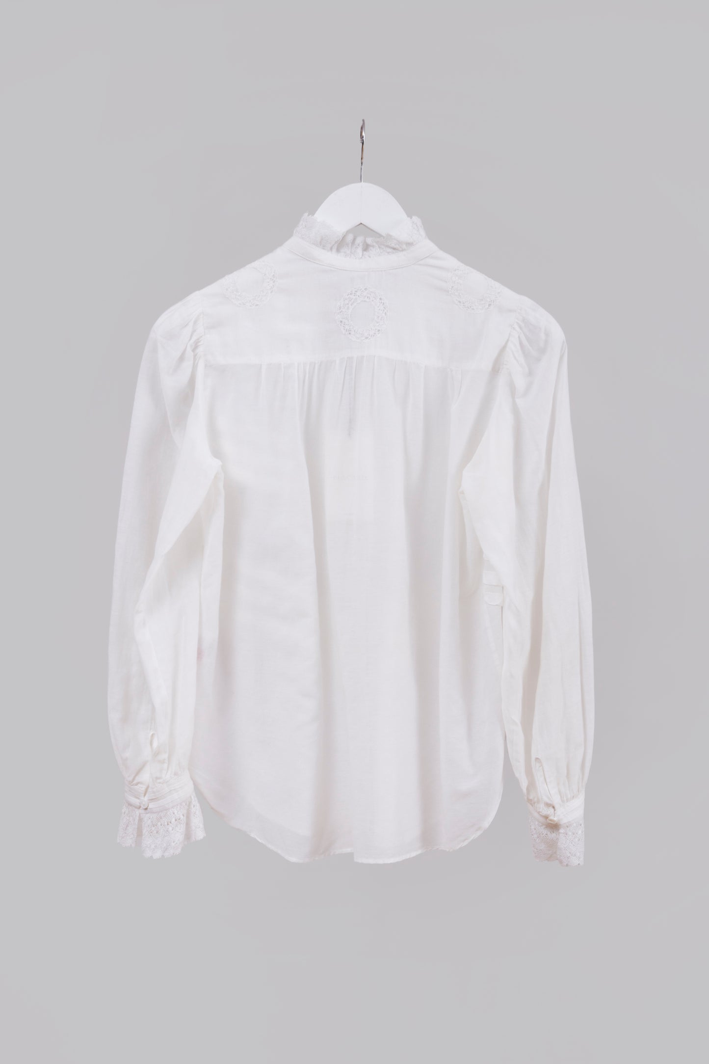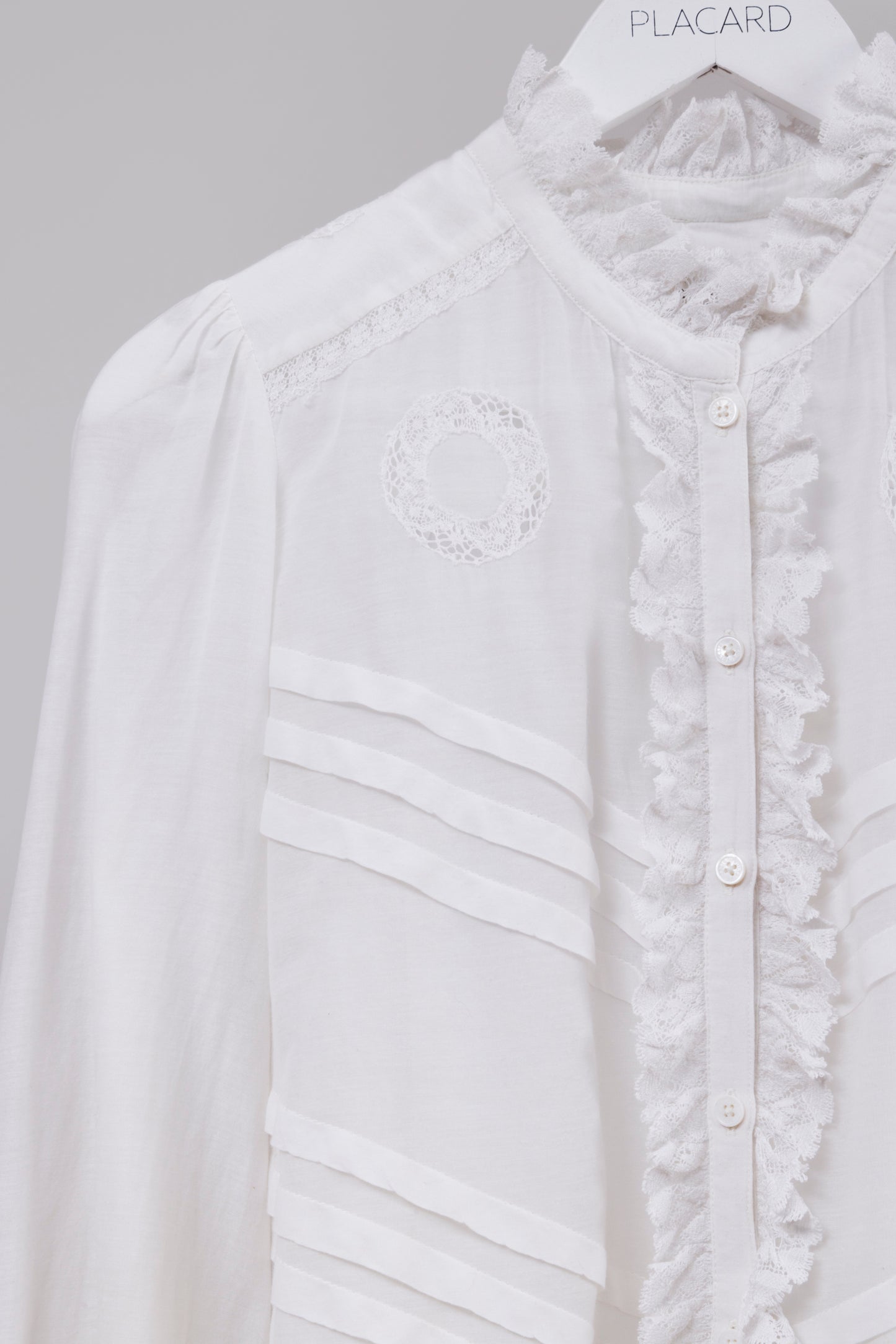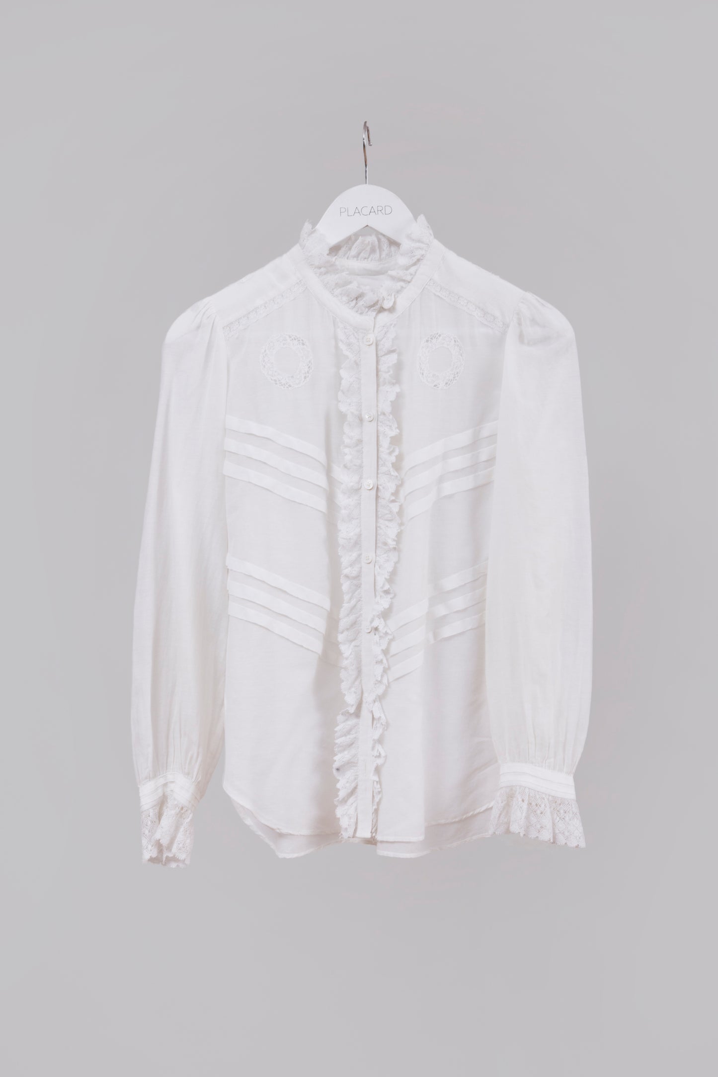 Blusa ZADIG&VOLTAIRE. Modelo Deluxe, cuello redondo y puños de encaje blanco. Tela delgada.