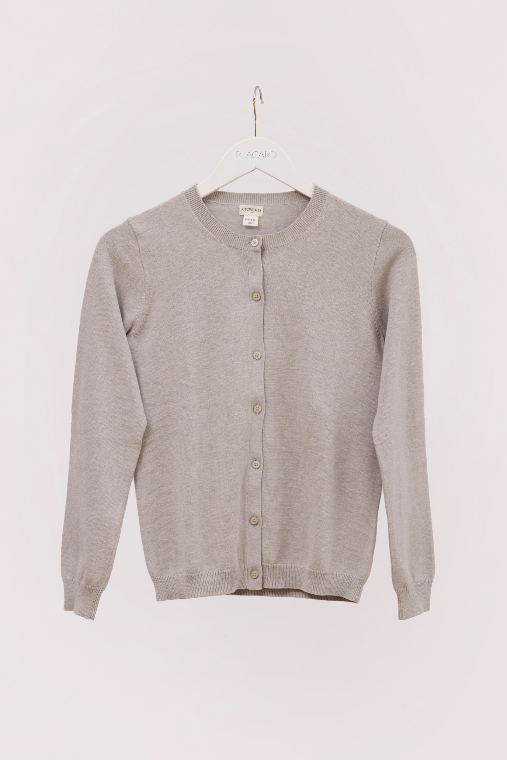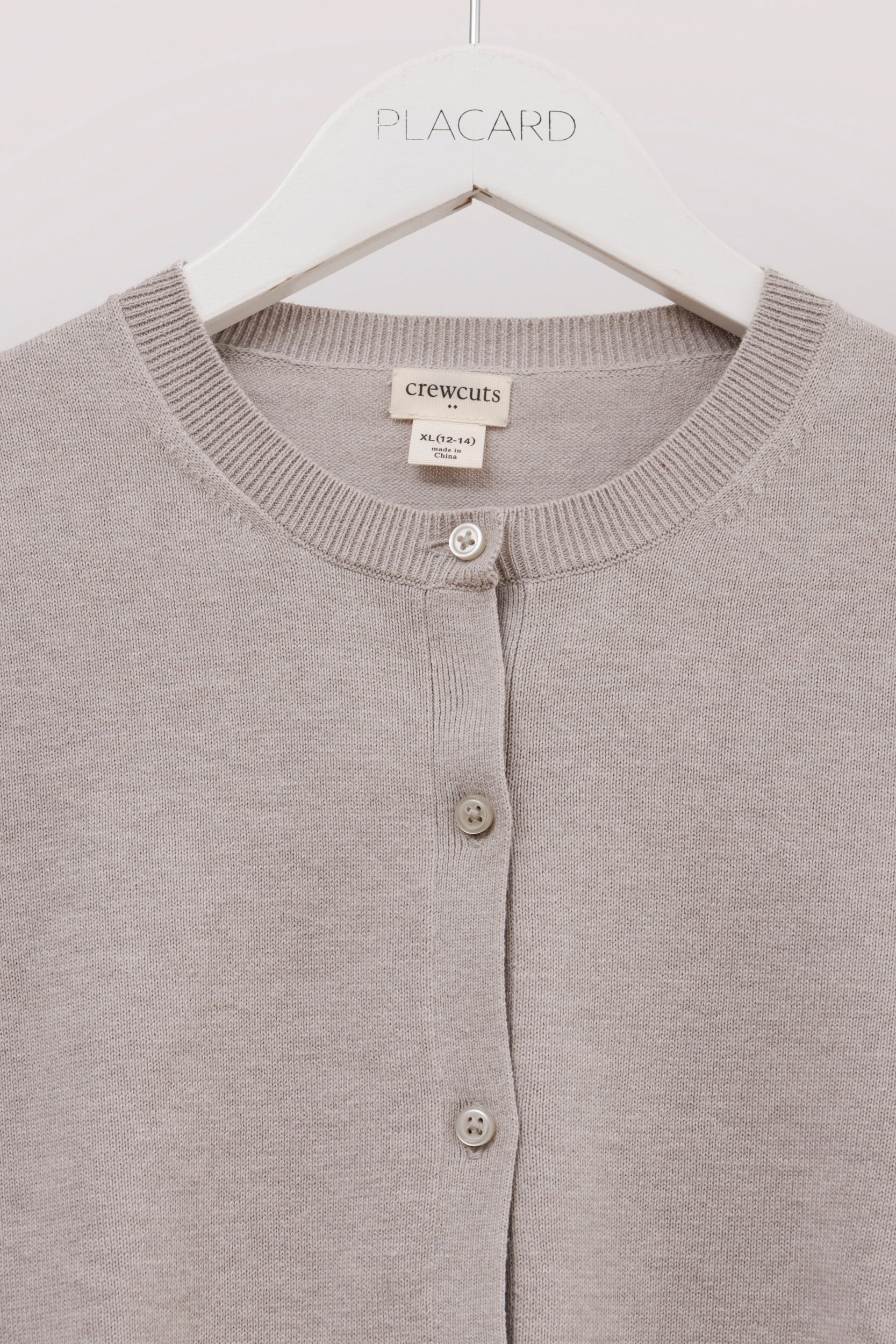 Cárdigan CREWCUTS. Modelo de punto en color gris claro, presenta cuello redondo clásico y cierre frontal con botones, además de puños y dobladillos acanalados que aportan un acabado estructurado. Confeccionado en 100% algodón para una textura suave y transpirable.