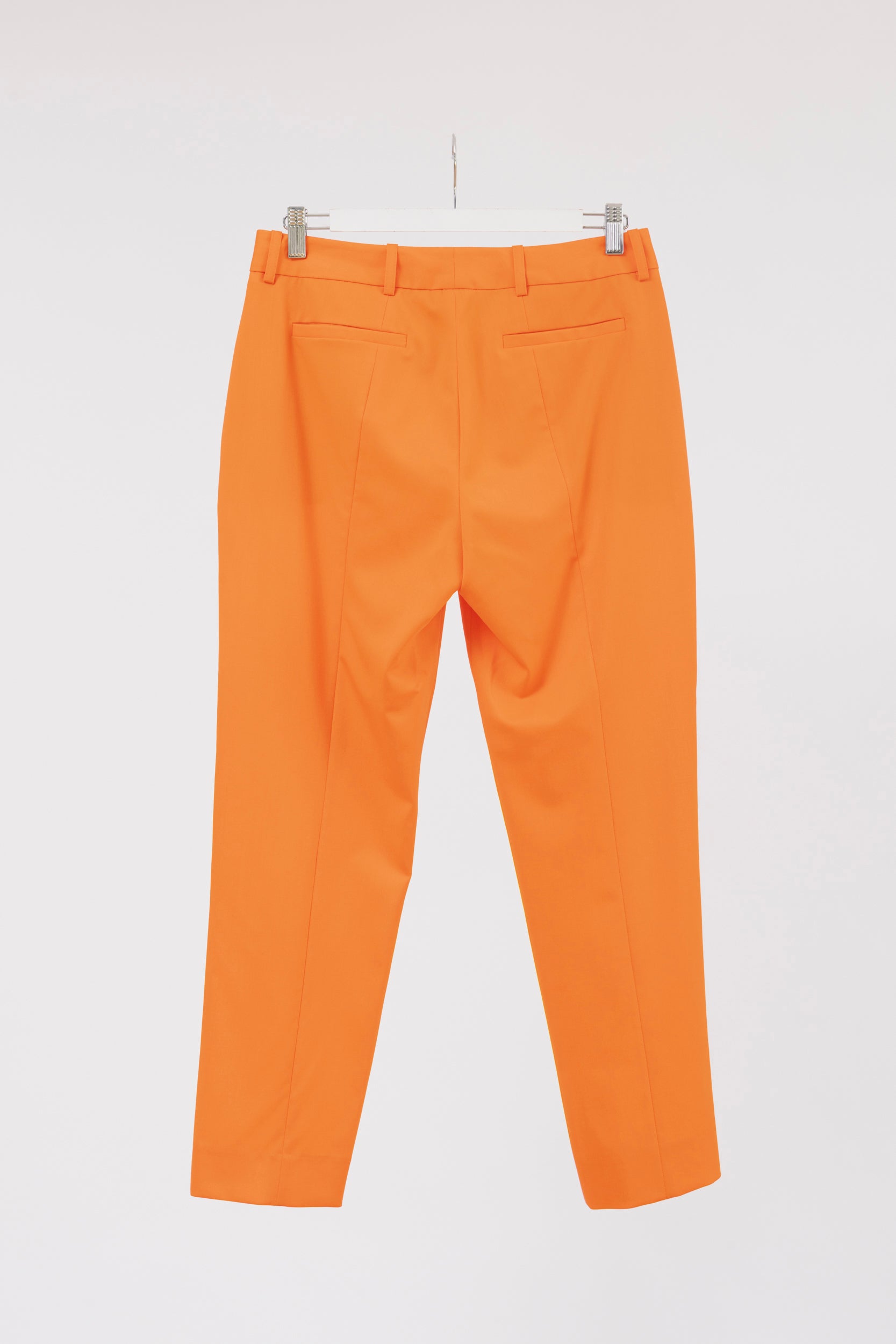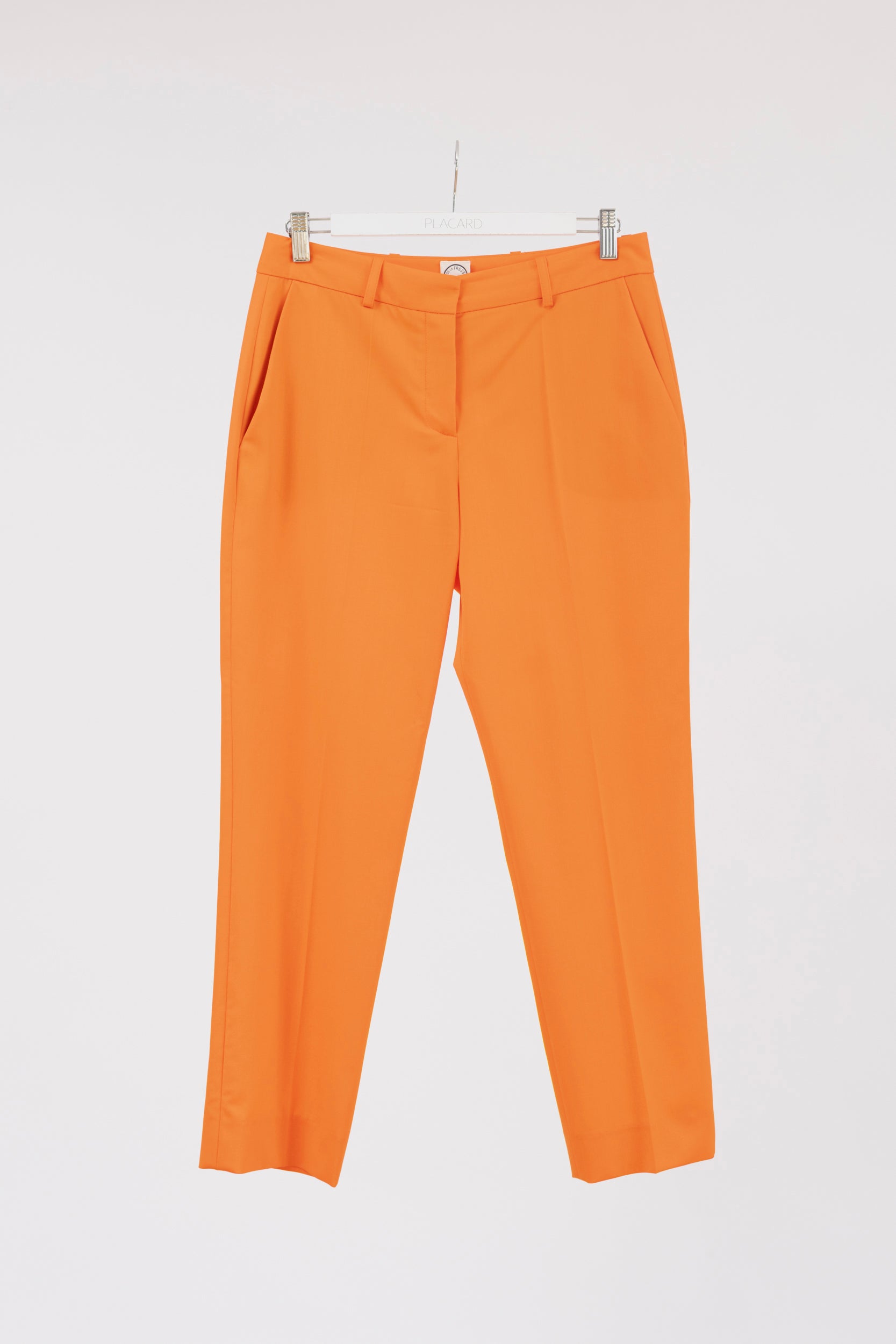 Pantalón INÉS DE LA FRESSANGE. Modelo Audrey, confeccionado en un vibrante tono naranja que aporta sofisticación y estilo. Su corte cónico realza la silueta con una caía impecable, mientras que el cierre con cremallera invisible en la parte delantera mantiene un acabado pulido y femenino, cuenta con bolsillos laterales, bolsillos de ojal traseros y trabillas para cinturón, detalles que combinan funcionalidad y elegancia.