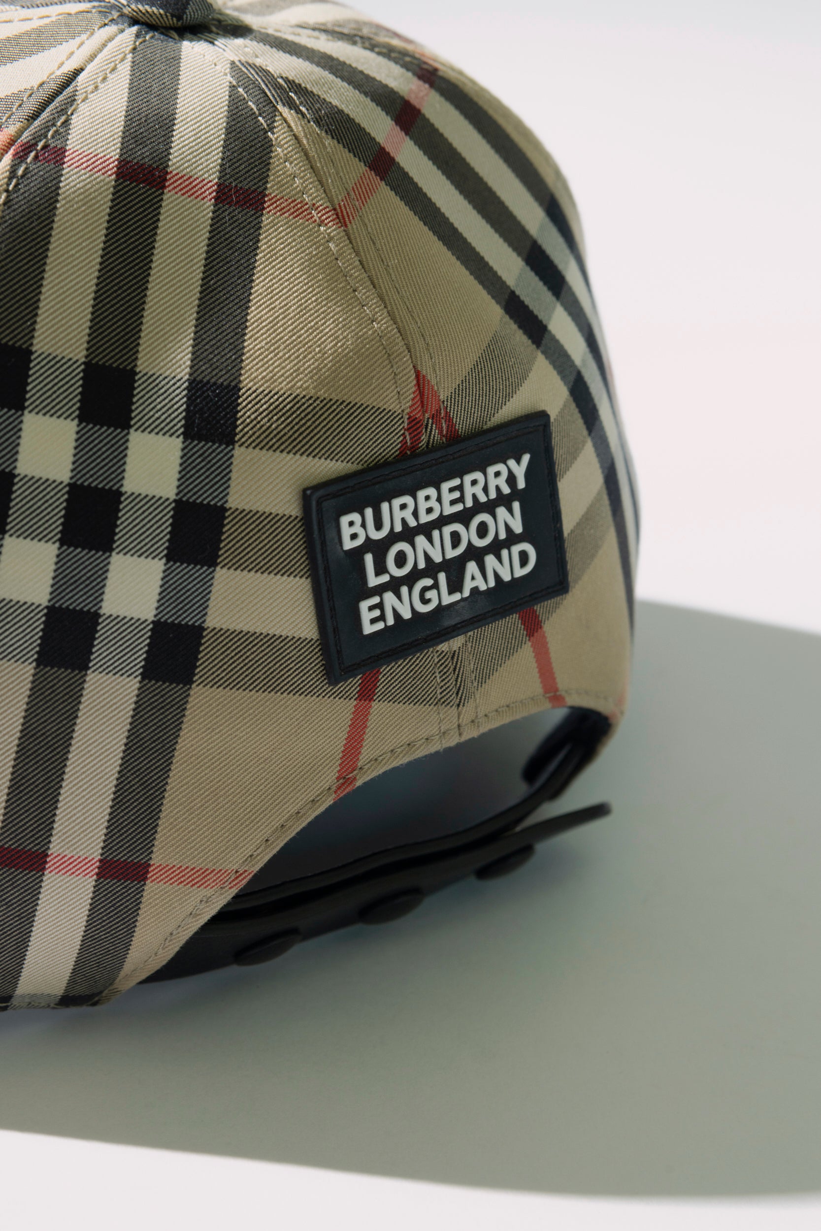Jockey BURBERRY. Modelo Nova Check hat, combina el icónico diseño británico con funcionalidad moderna. Confeccionada en un material water-repellent, esta gorra protege de la lluvia ligera y la humedad sin perder elegancia. Su clásico estampado destaca en tonos beige con detalles en negro, rojo y blanco, aportando un look atemporal y fácil de combinar. El diseño estructurado y la visera curva aseguran un calce cómodo y favorecedor.