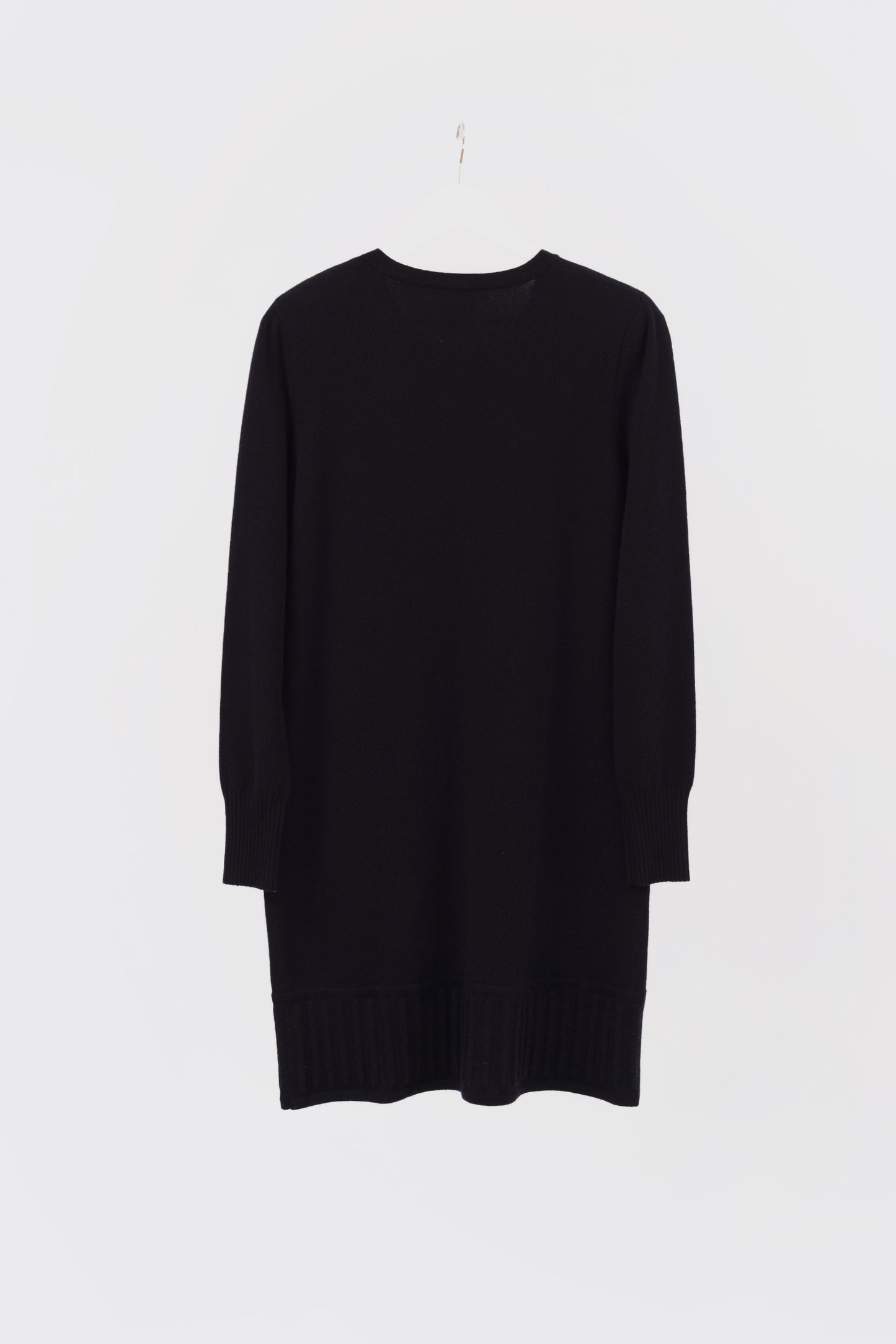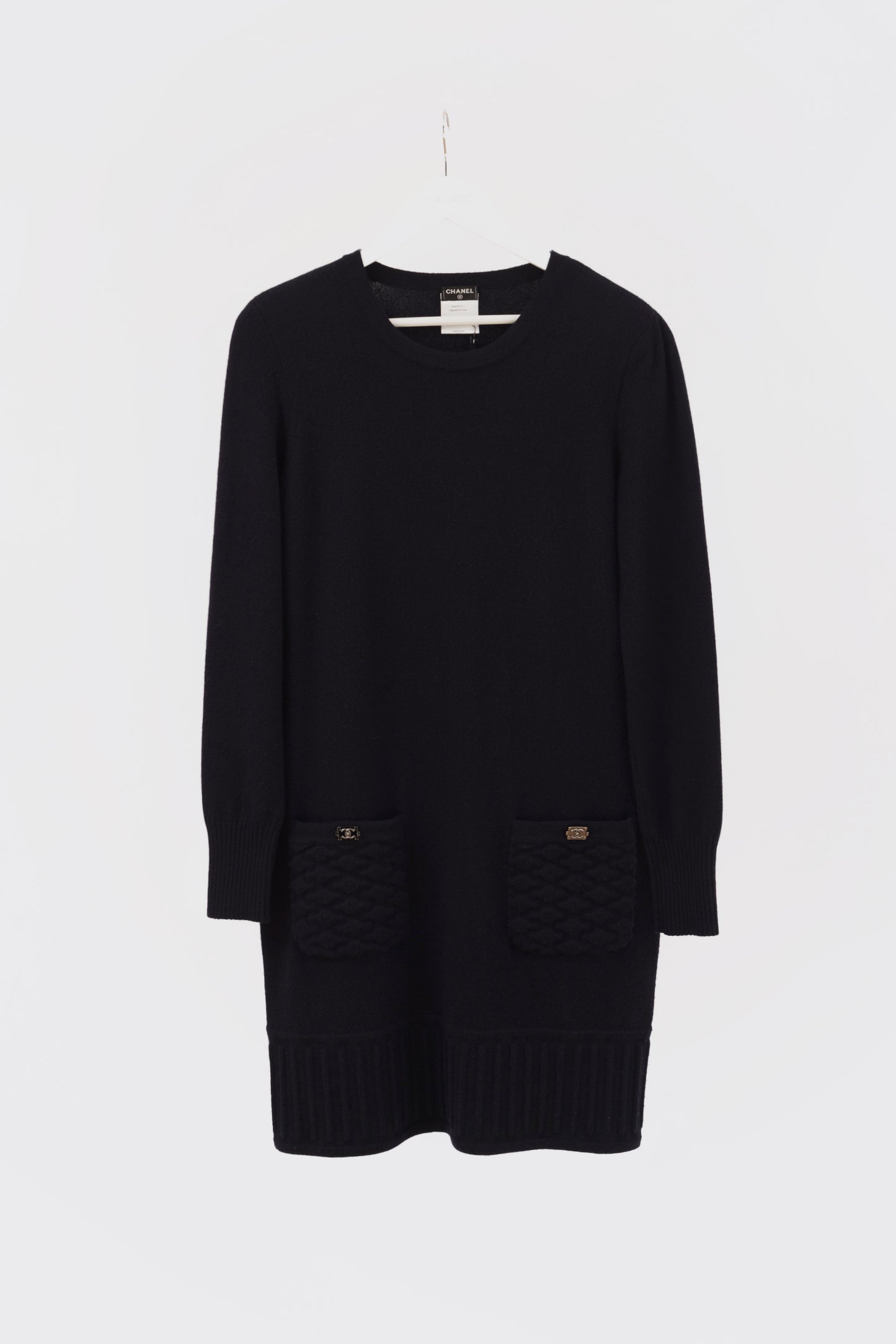 Vestido CHANEL. Modelo de lana tejido con dos bolsillos y botones con logo. Tejido acolchado en ruedo y bolsillos.