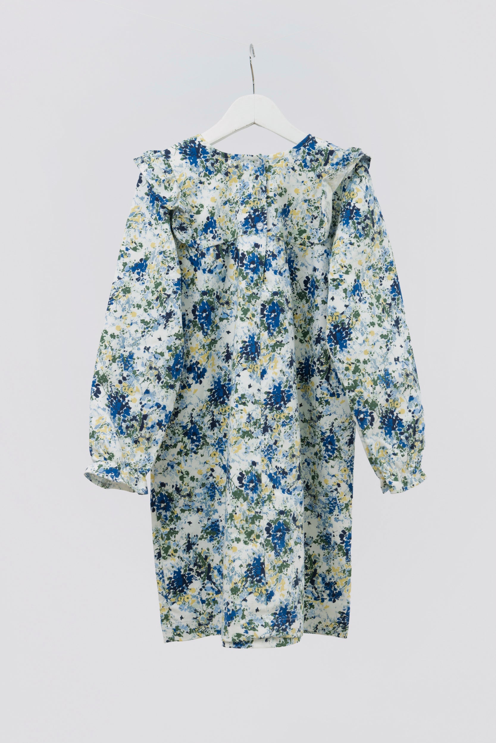 Vestido LAURA MILLER. Modelo con estampado floral elaborado en tejido tipo gabardina, que aporta estructura y durabilidad. Presenta un diseño recto con cuello redondo, delicados vuelos en la parte superior de los hombros y manga abullonada, que suman un estilo romántico y femenino. Su estampado le da un aire alegre y atemporal, ideal para distintas ocasiones.