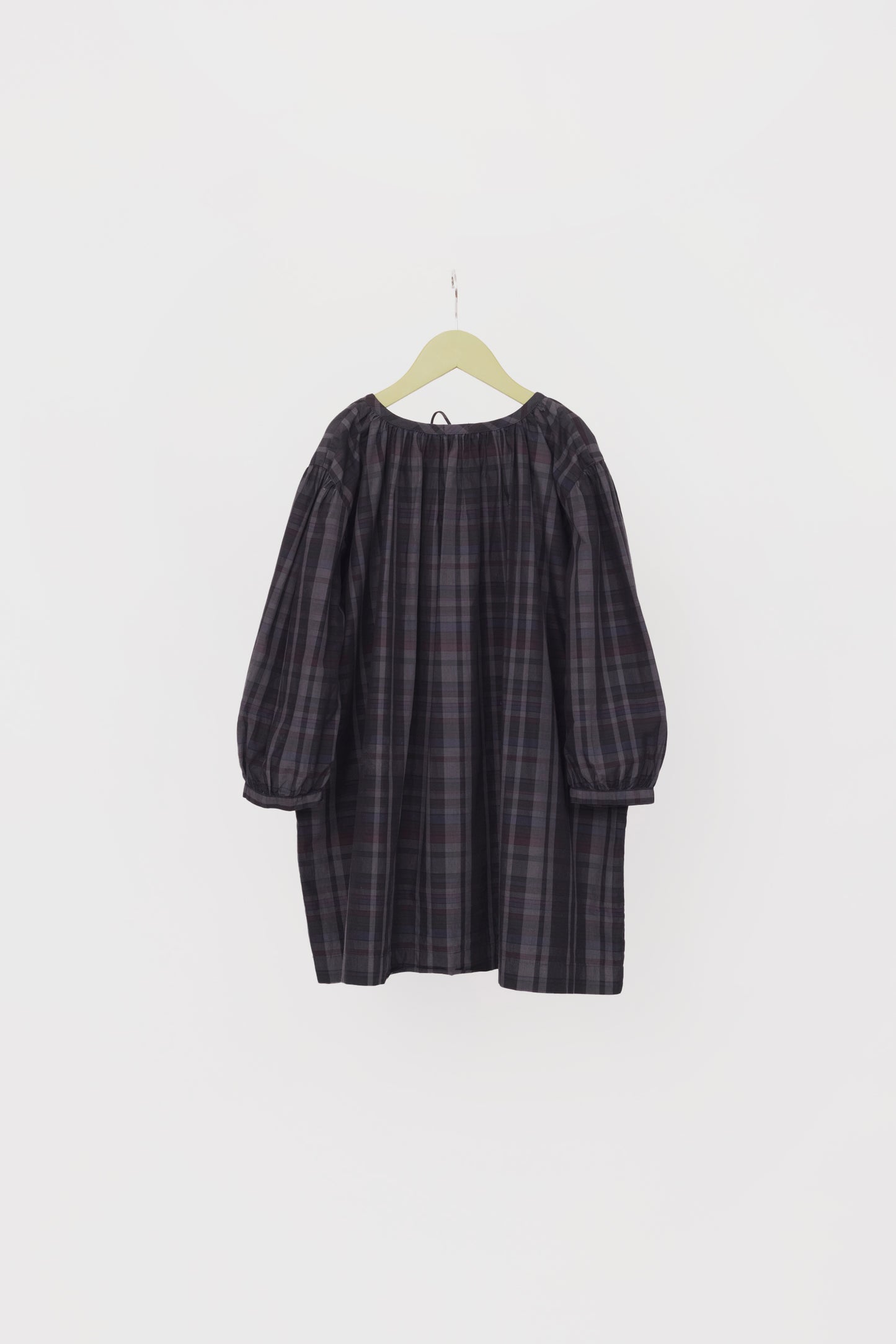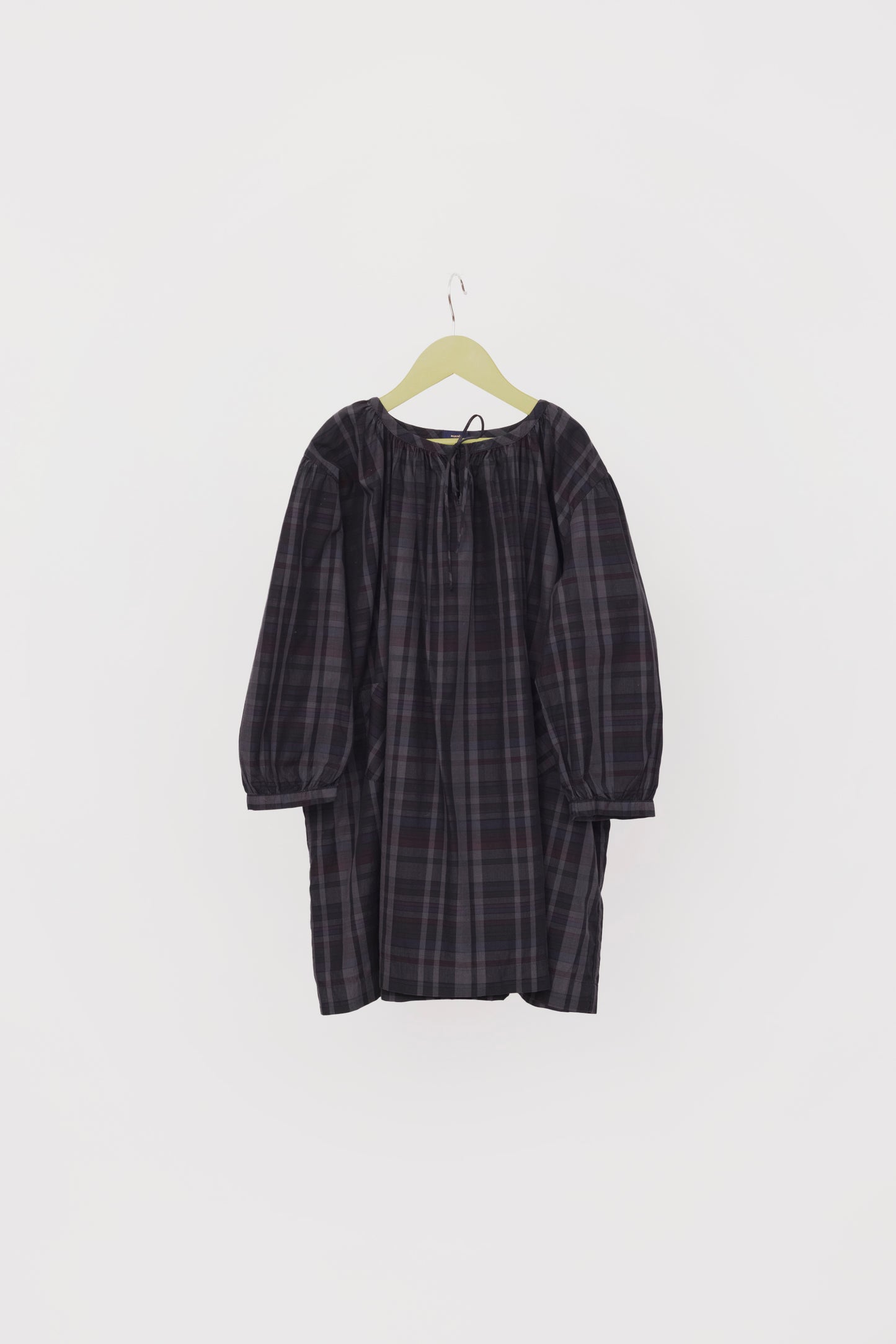 Vestido MAKIE. Modelo acampanado de corte amplio y cuello redondo con un lazo. Manga 3/4. Diseño cuadrillé con 2 bolsillos.